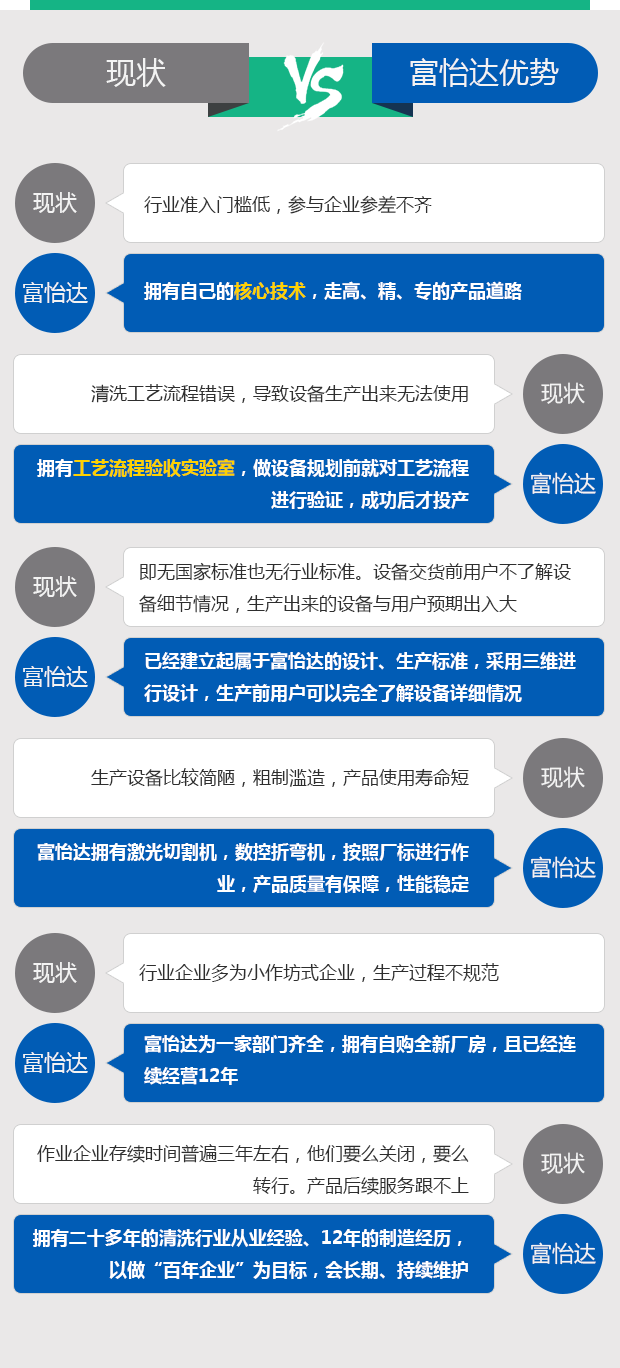 富一達有二十多年的清洗行業從業經驗、12年的制造經歷,以做“百年企業”為目標,會長期、持續維護
